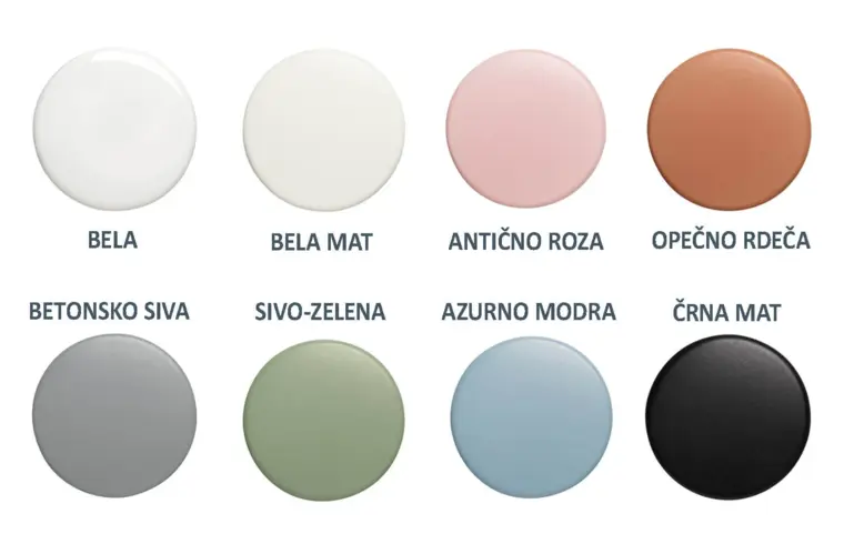 Izbirate lahko med osmimi barvnimi različicami umivalnikov serije Noemi: