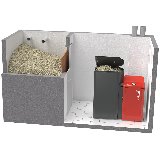 Poleg kotla je nameščen zalogovnik pelet kapacitete 107 kg (polnjenje na cca. 5 dni) ali 200 kg (polnjenje na cca. 10 dni). Oba zalogovnika pelet se polnita ročno. Zalogovnik vsebuje mrežo za enostavnejše ročno polnjenje pelet ter mehanizem za enostavno odpiranje in zapiranje pokrova.